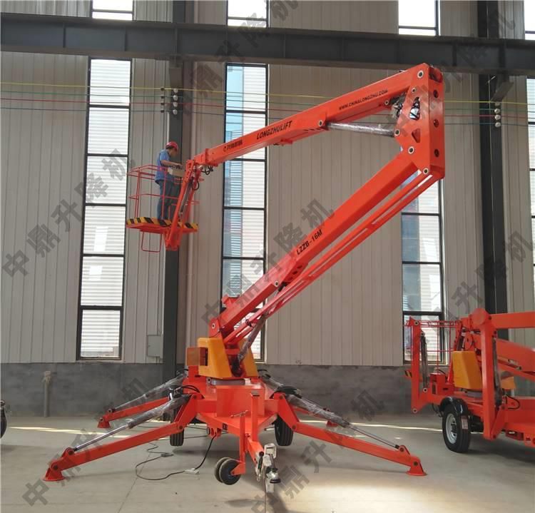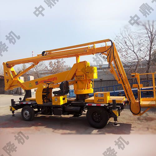 拖車折臂式升降機:可以掛在汽車上,與汽車同步,適合野外高空作業。