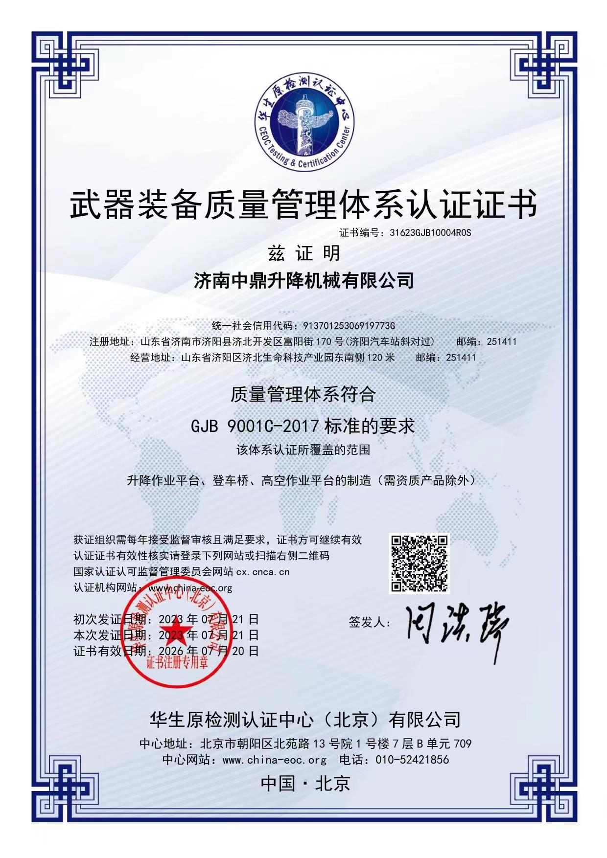 中鼎ISO9001質量管理體系證書中文版